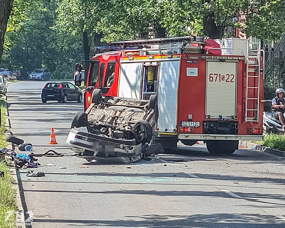 Zabrze. W ubiegłą sobotę, na ul. Pszczyńskiej doszło do dachowania samochodu osobowego.