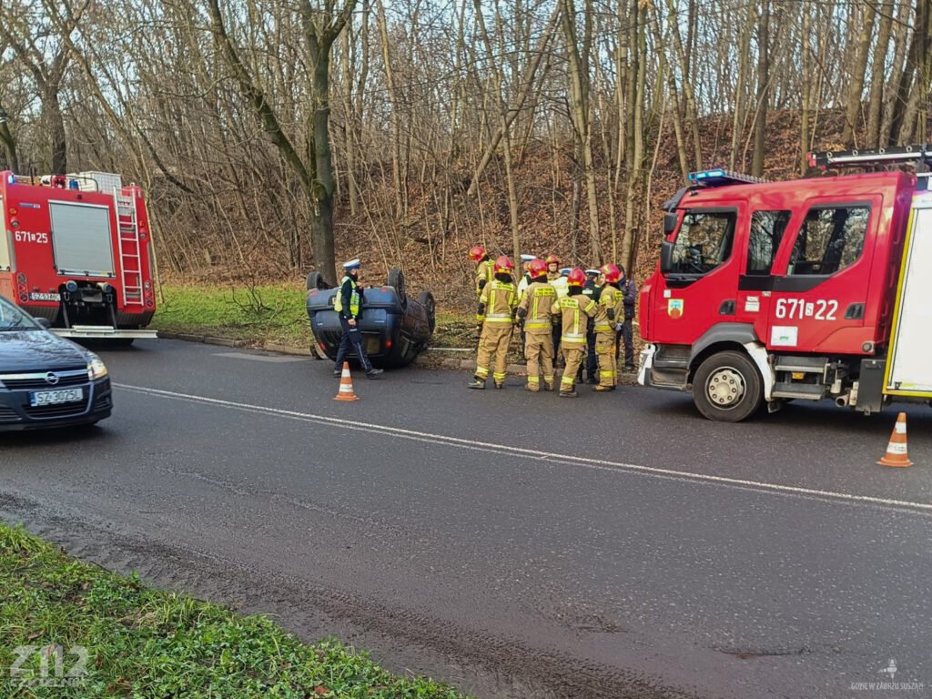Auto uderzyło w krawężnik, odbiło się, a następnie dachowało, kończąc jazdę na jezdni. Mimo poważnie wyglądającego zdarzenia kierowca nie odniósł poważnych obrażeń.