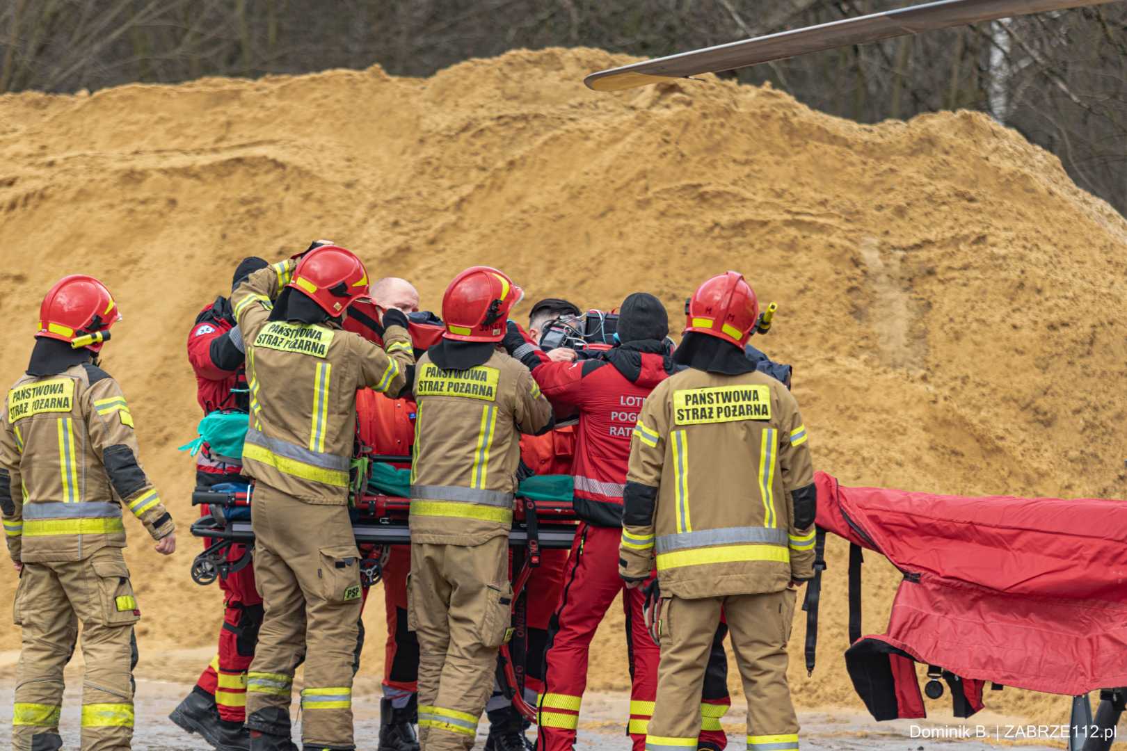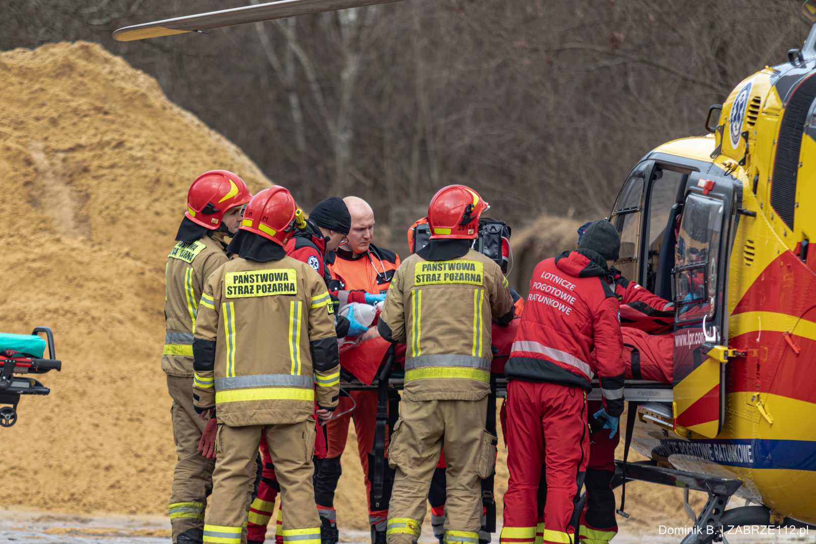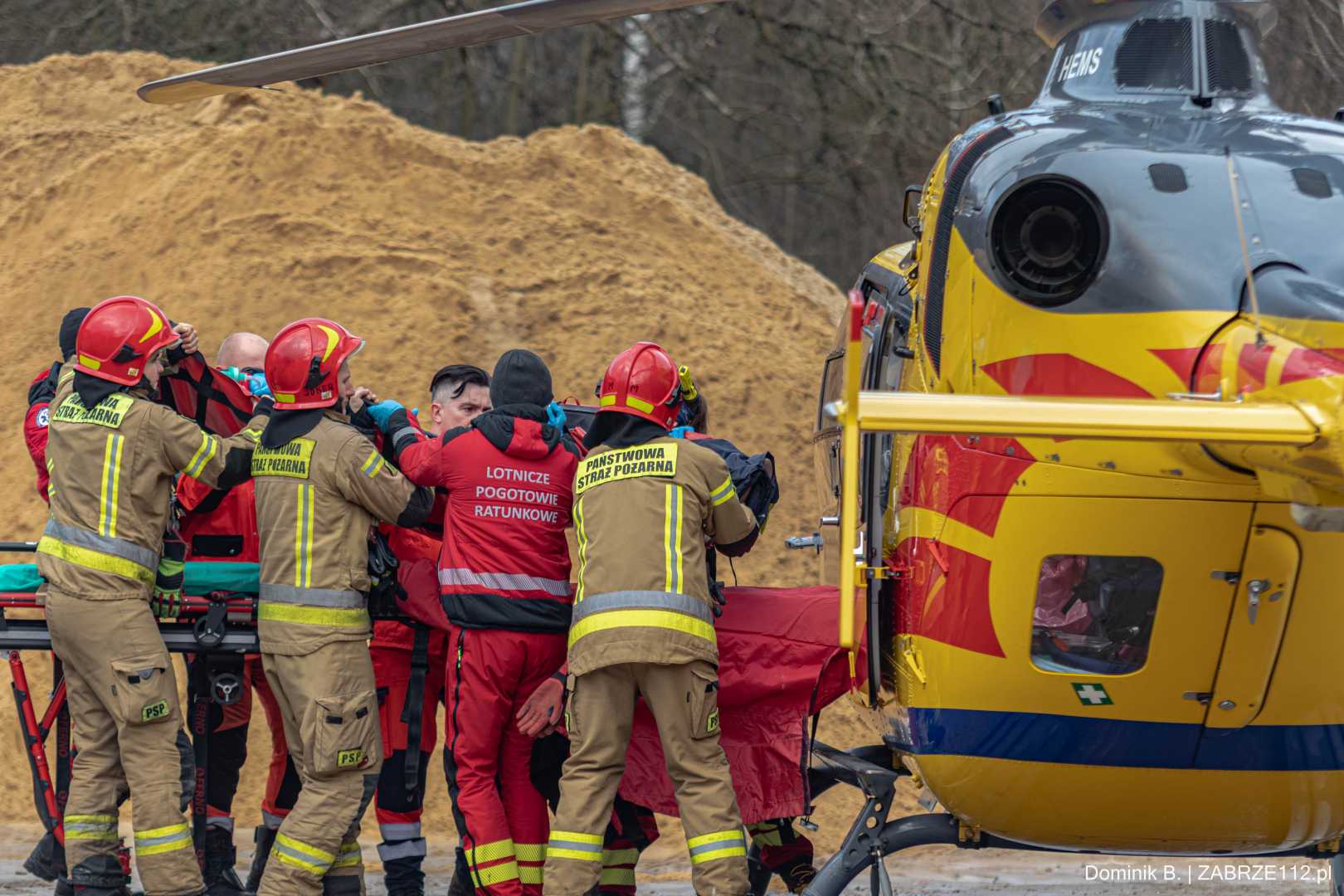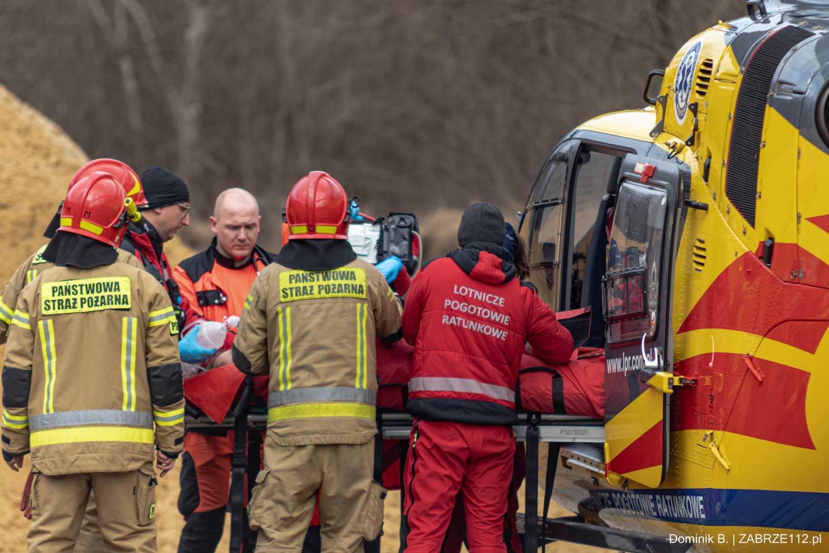 Z nieoficjalnych informacji, do których na tę chwilę dotarliśmy, wynika, że mężczyzna doznał poważnego urazu mózgowo-czaszkowego. Decyzja obecnego na miejscu Zespołu Ratownictwa Medycznego mogła być tylko jedna – wezwano załogę śmigłowca LPR (Ratownik-4). Poszkodowany został pilnie przetransportowany drogą lotniczą pod opiekę specjalistów do Górnośląskiego Centrum Medycznego w Katowicach-Ochojcu.