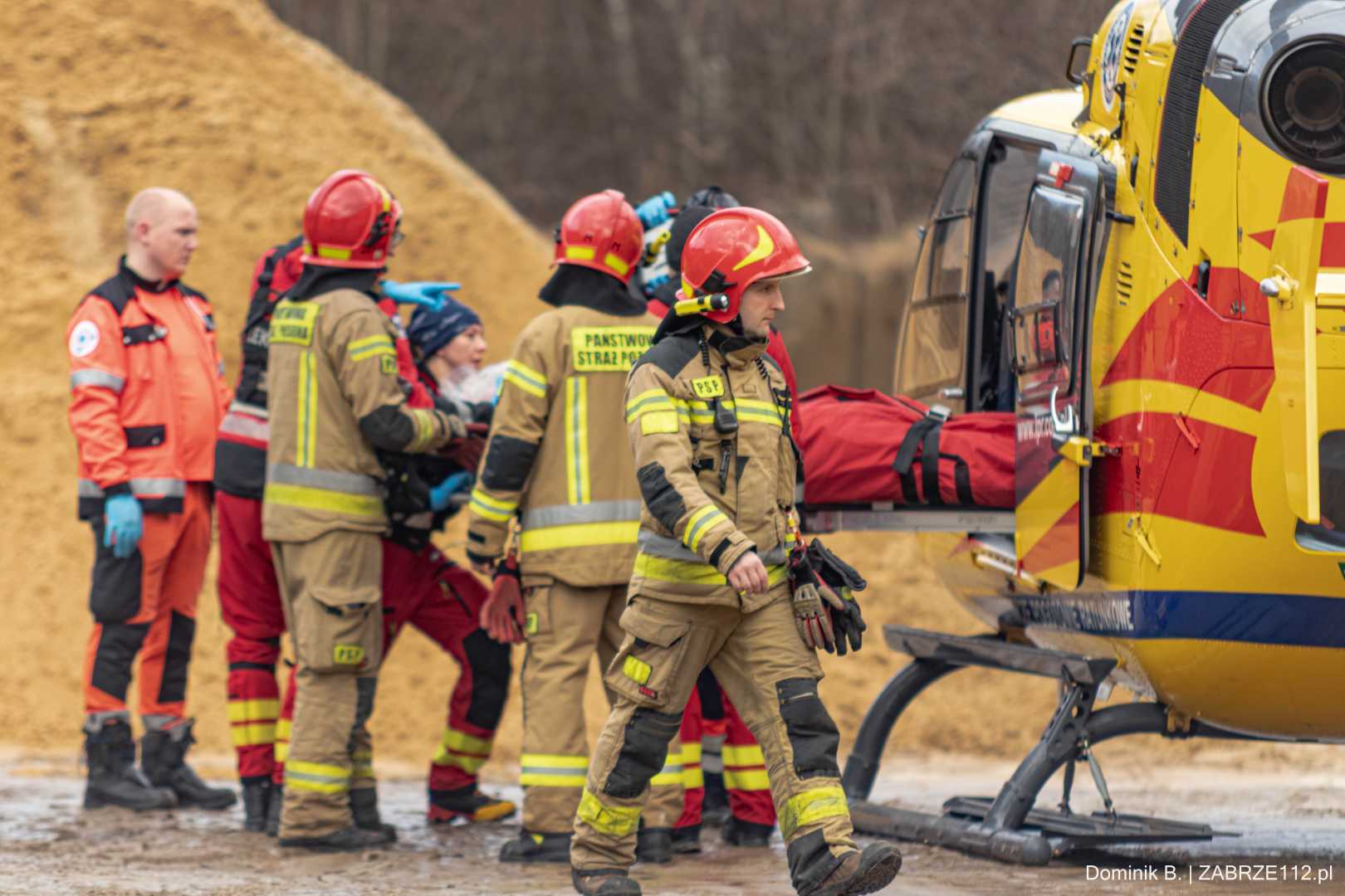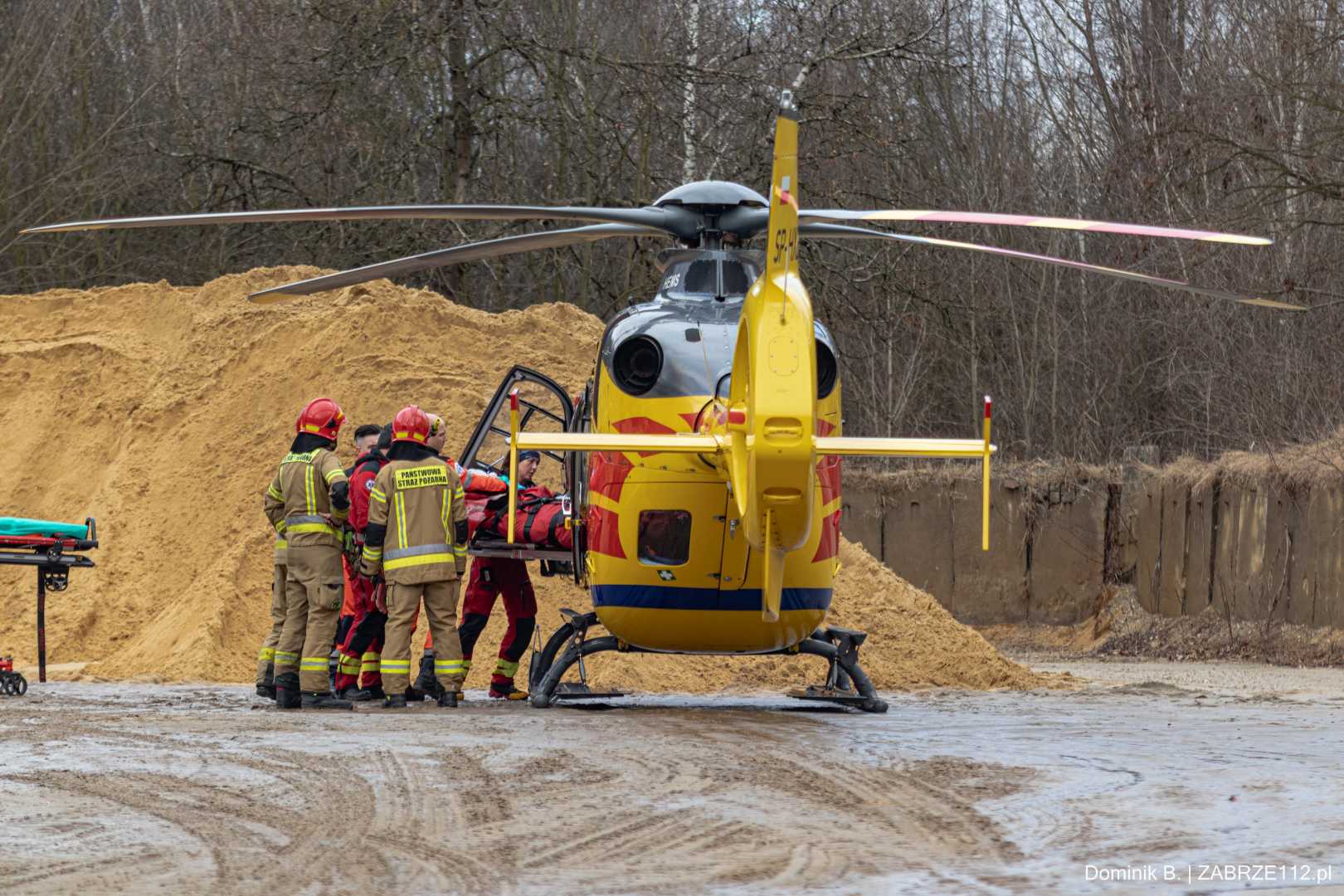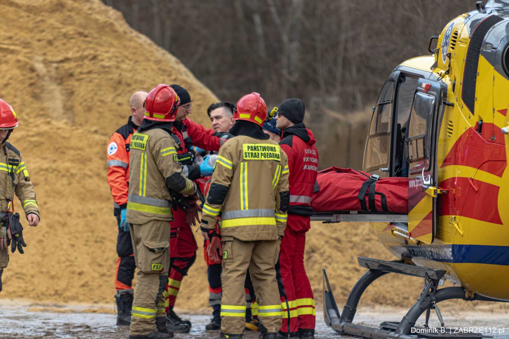 Z nieoficjalnych informacji, do których na tę chwilę dotarliśmy, wynika, że mężczyzna doznał poważnego urazu mózgowo-czaszkowego. Decyzja obecnego na miejscu Zespołu Ratownictwa Medycznego mogła być tylko jedna – wezwano załogę śmigłowca LPR (Ratownik-4). Poszkodowany został pilnie przetransportowany drogą lotniczą pod opiekę specjalistów do Górnośląskiego Centrum Medycznego w Katowicach-Ochojcu.