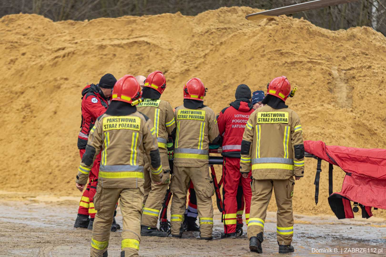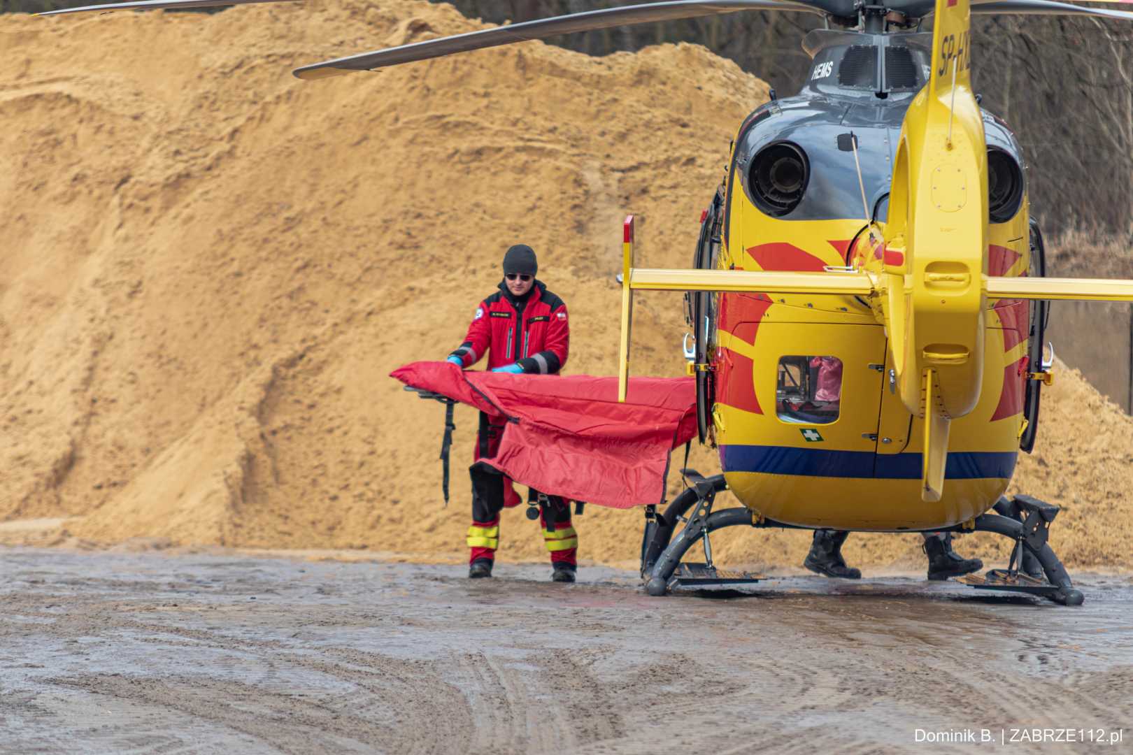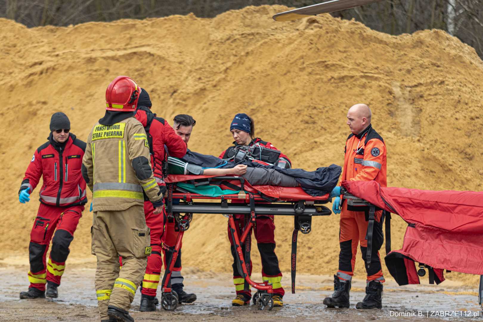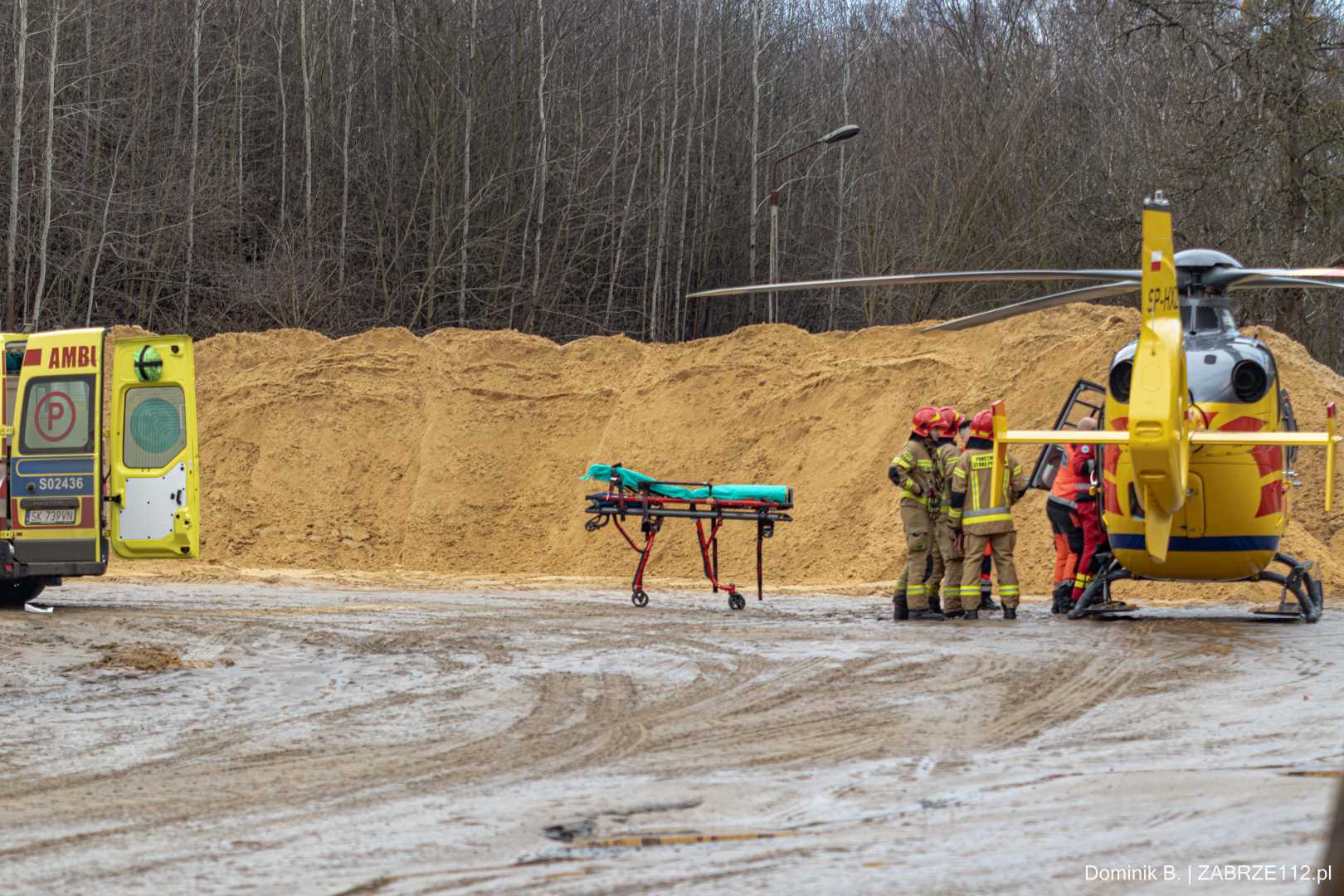 Z nieoficjalnych informacji, do których na tę chwilę dotarliśmy, wynika, że mężczyzna doznał poważnego urazu mózgowo-czaszkowego. Decyzja obecnego na miejscu Zespołu Ratownictwa Medycznego mogła być tylko jedna – wezwano załogę śmigłowca LPR (Ratownik-4). Poszkodowany został pilnie przetransportowany drogą lotniczą pod opiekę specjalistów do Górnośląskiego Centrum Medycznego w Katowicach-Ochojcu.