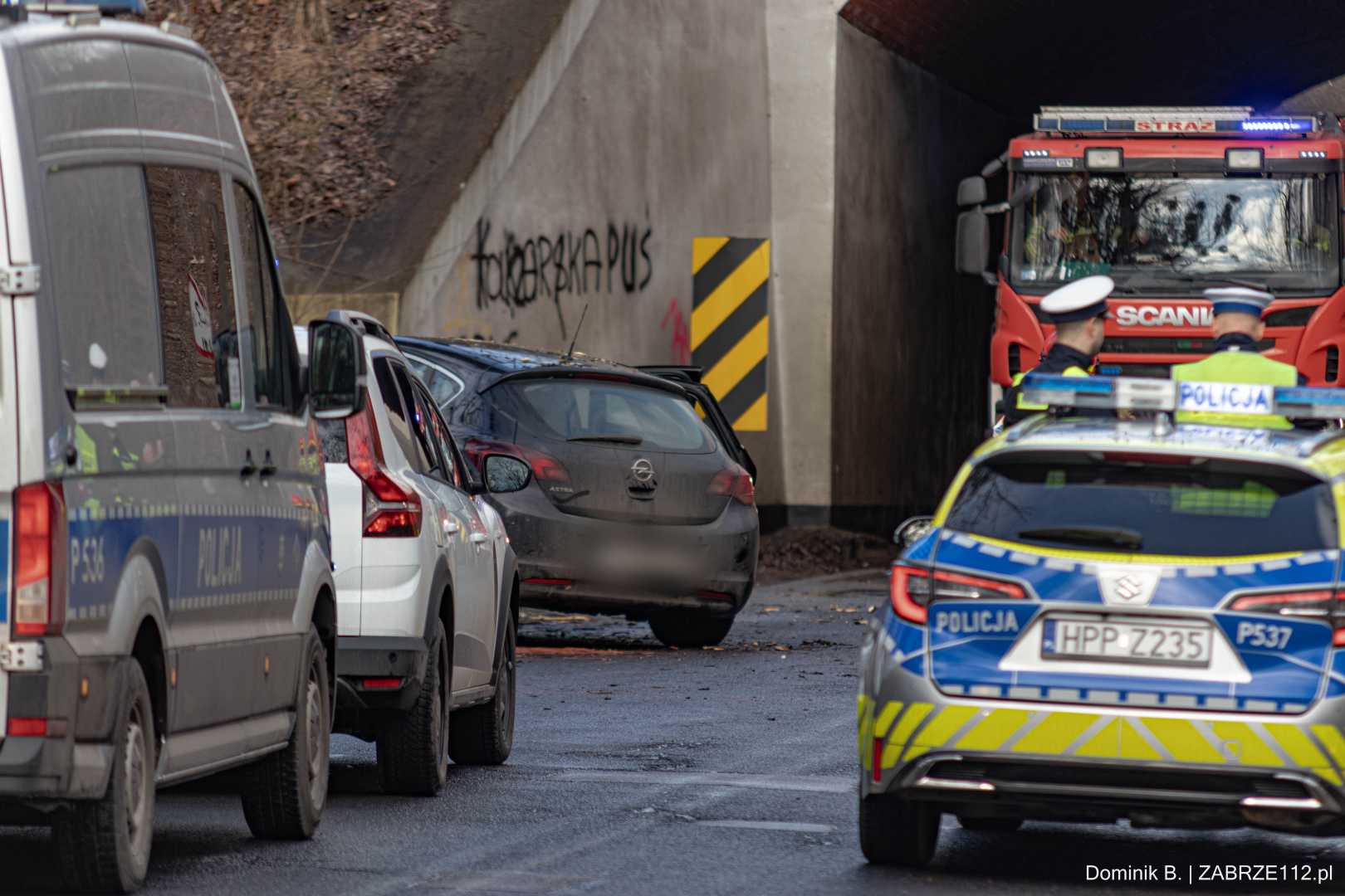 KIEROWCY, UWAGA! Ulica Drzymały, na wysokości wiaduktu DK88, na czas prowadzonych działań służb ratunkowych i dochodzeniowo-śledczych jest całkowicie zablokowana. Radzimy omijać ten rejon i wybierać trasy alternatywne.