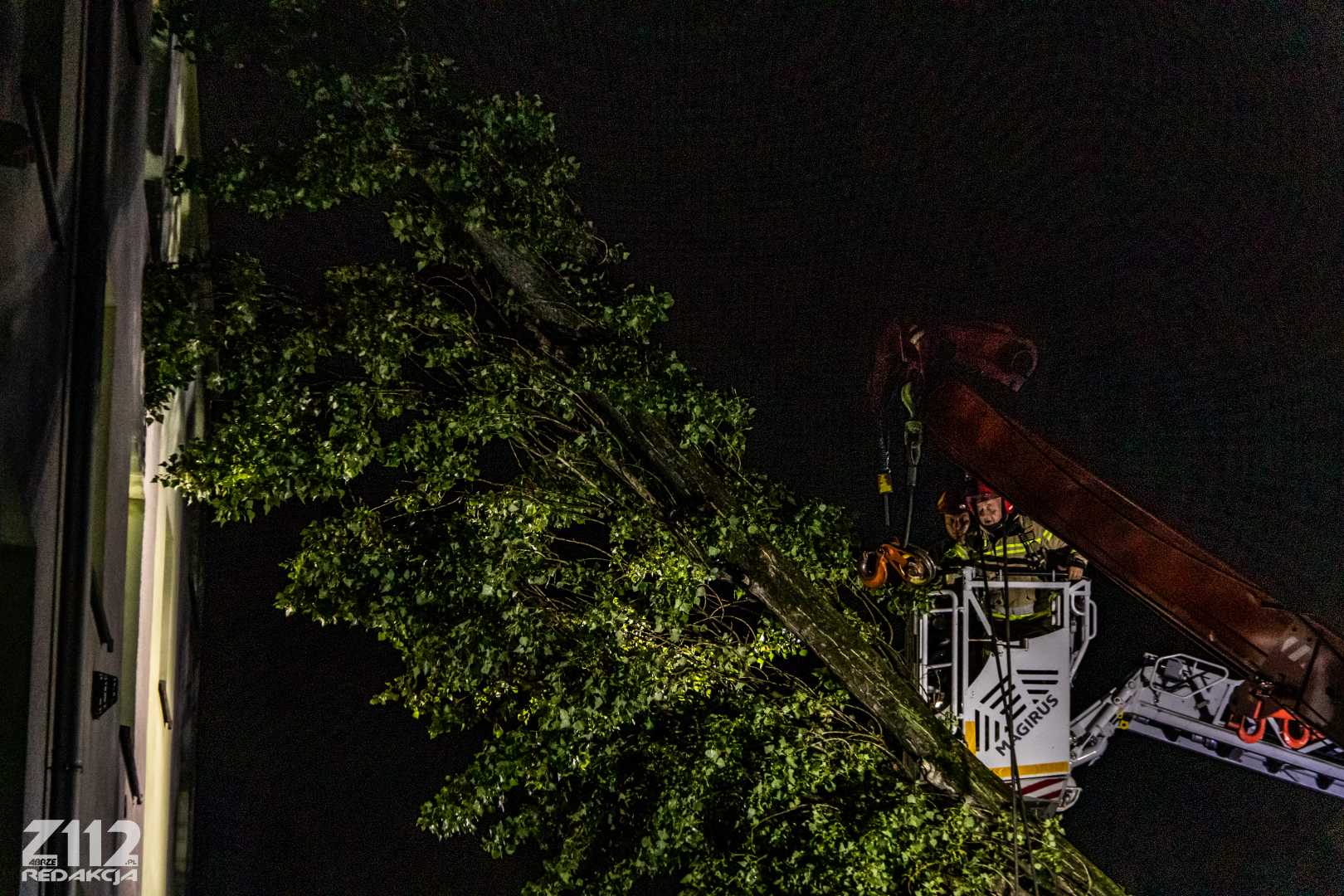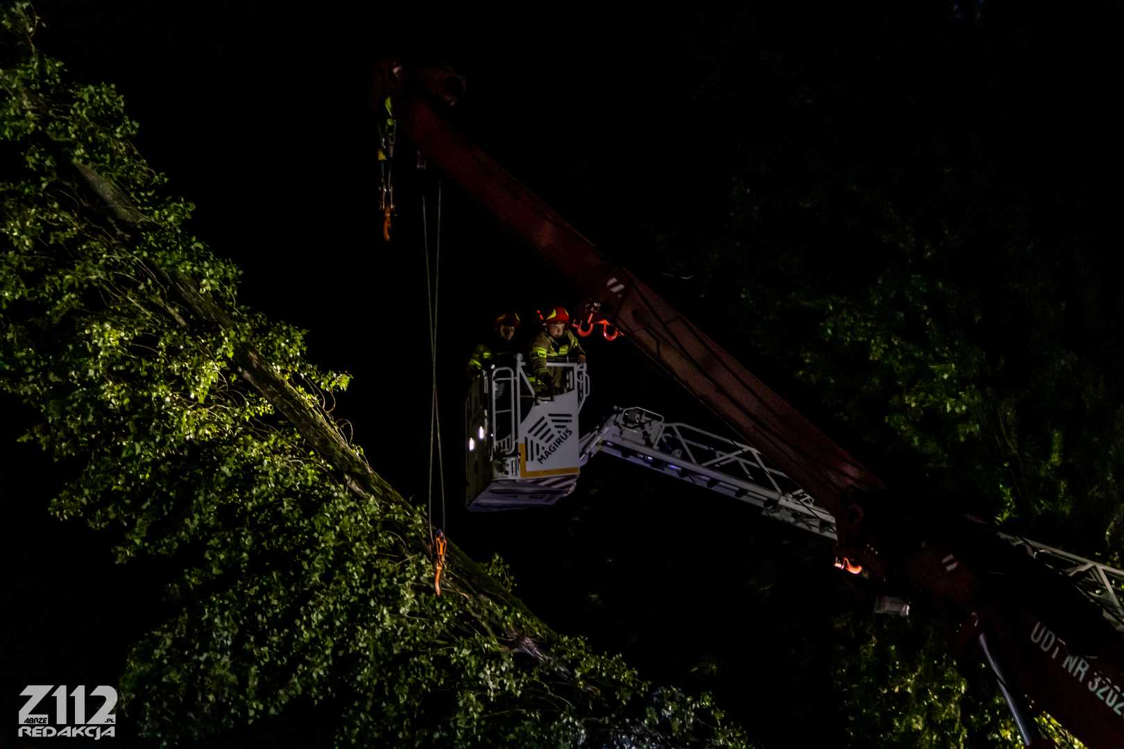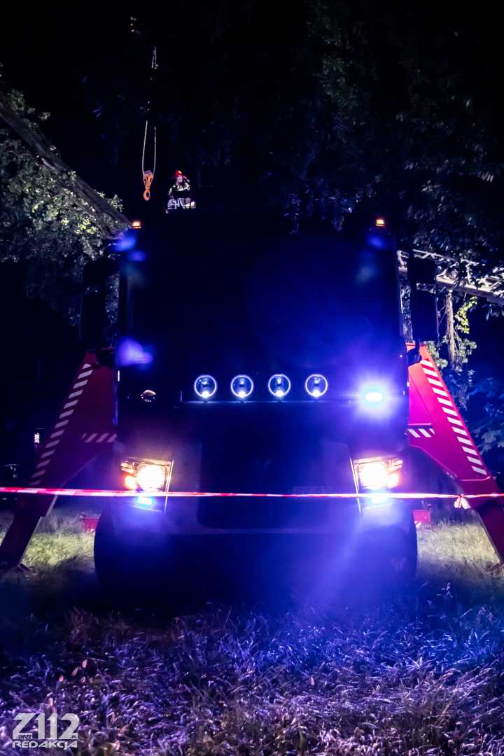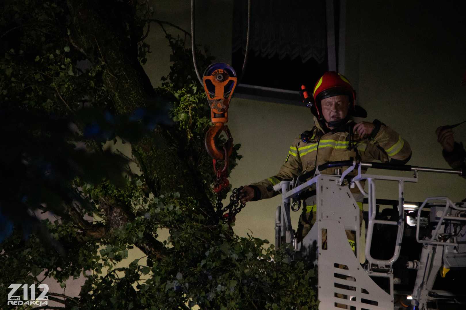 Działania polegają na zabezpieczeniu miejsca zdarzenia, przy pomocy dźwigu ze Specjalistycznej Grupy z Dąbrowy podnoszone jest drzewo, odsuwając je od budynku, następnie zostanie ono położone na ziemię – podsumowuje Dowódca.