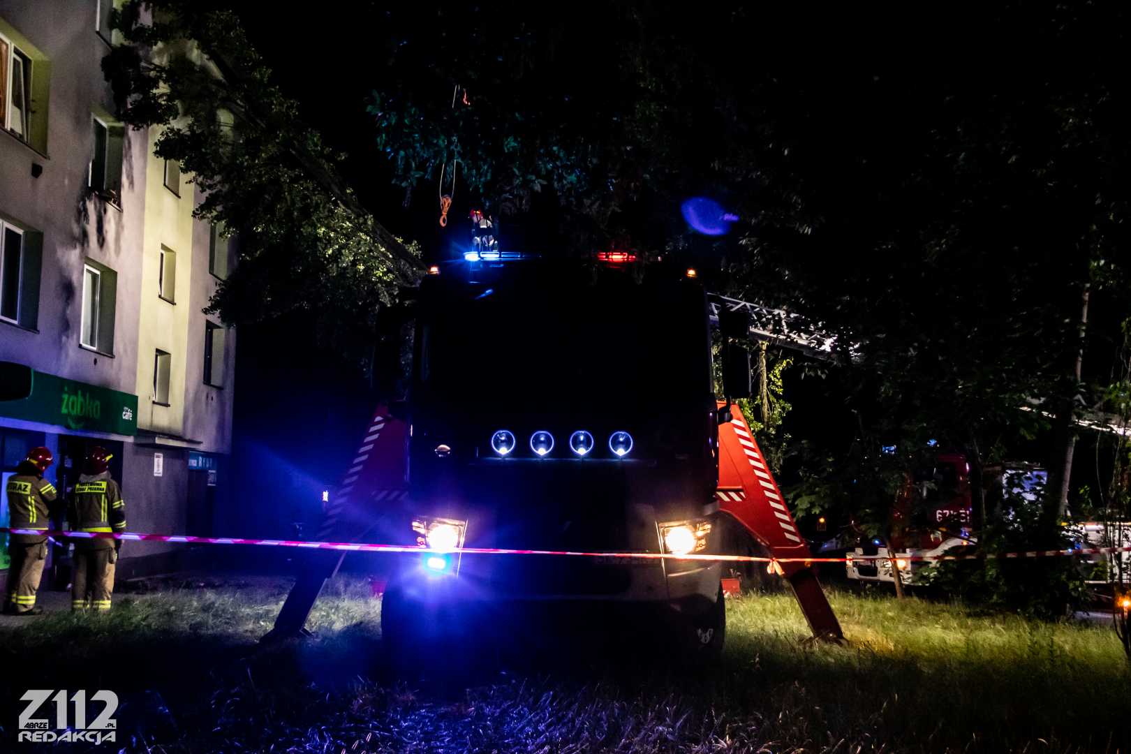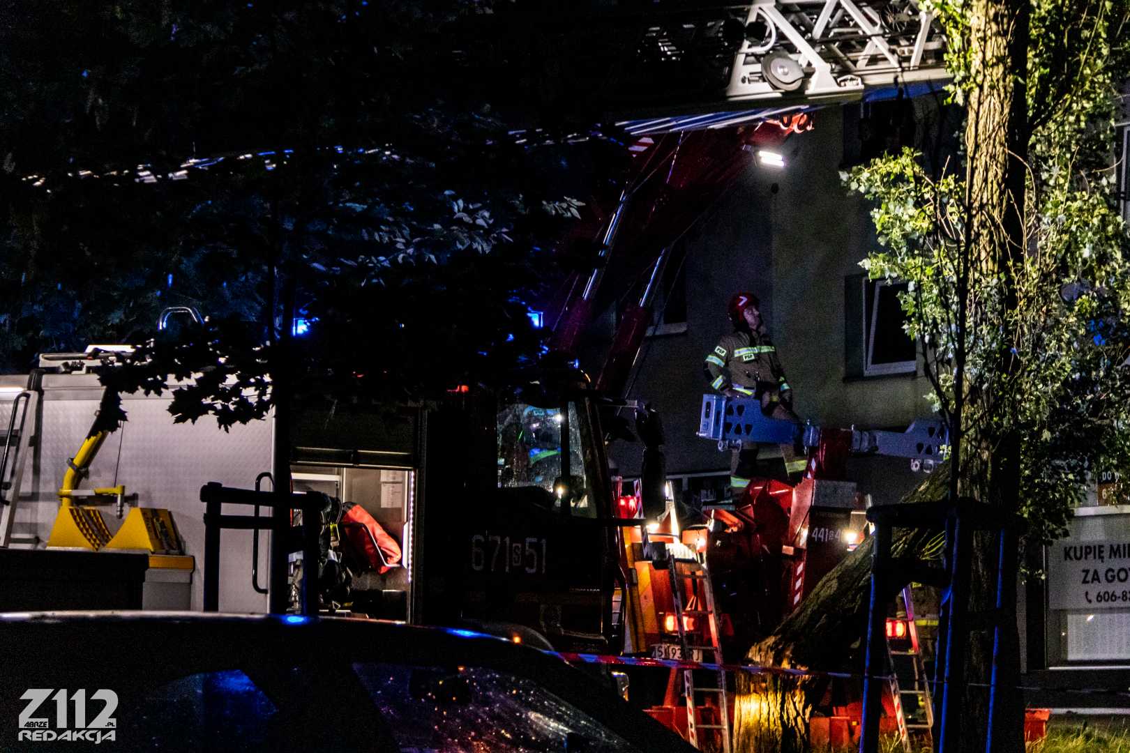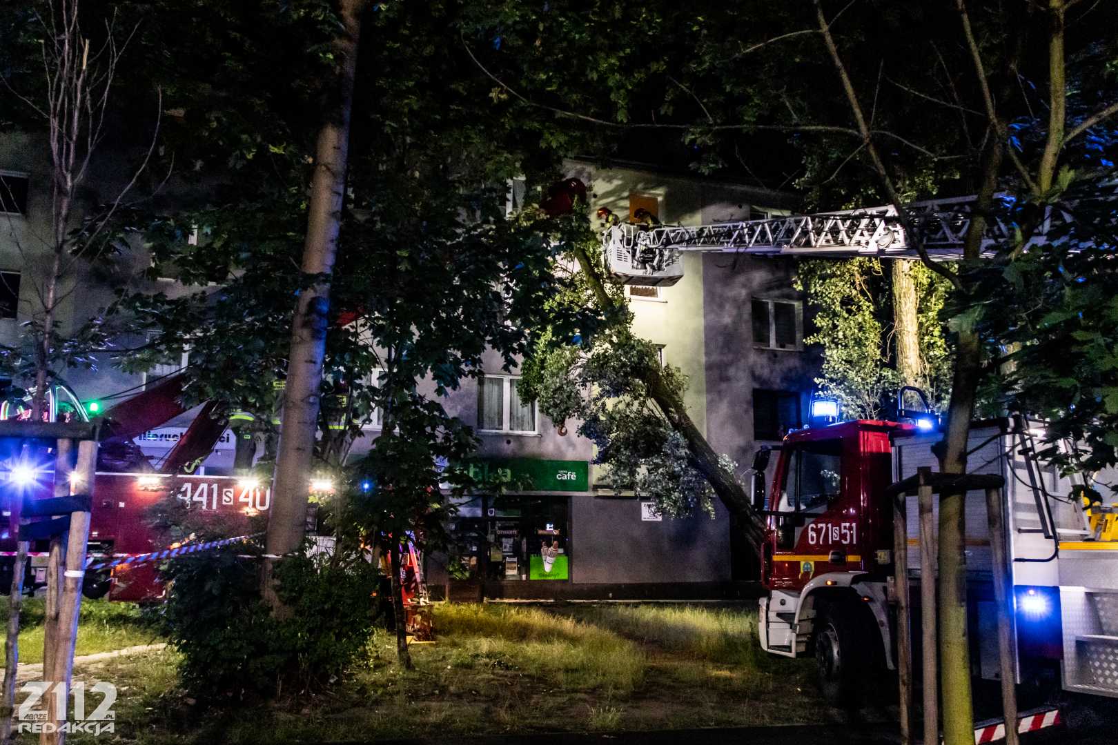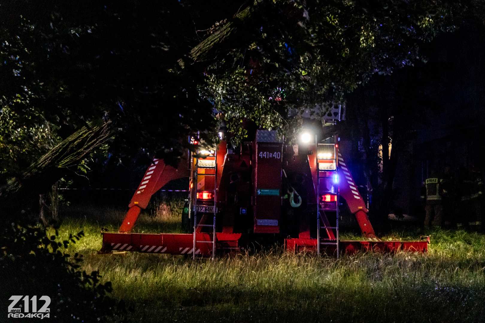 Działania polegają na zabezpieczeniu miejsca zdarzenia, przy pomocy dźwigu ze Specjalistycznej Grupy z Dąbrowy podnoszone jest drzewo, odsuwając je od budynku, następnie zostanie ono położone na ziemię – podsumowuje Dowódca.