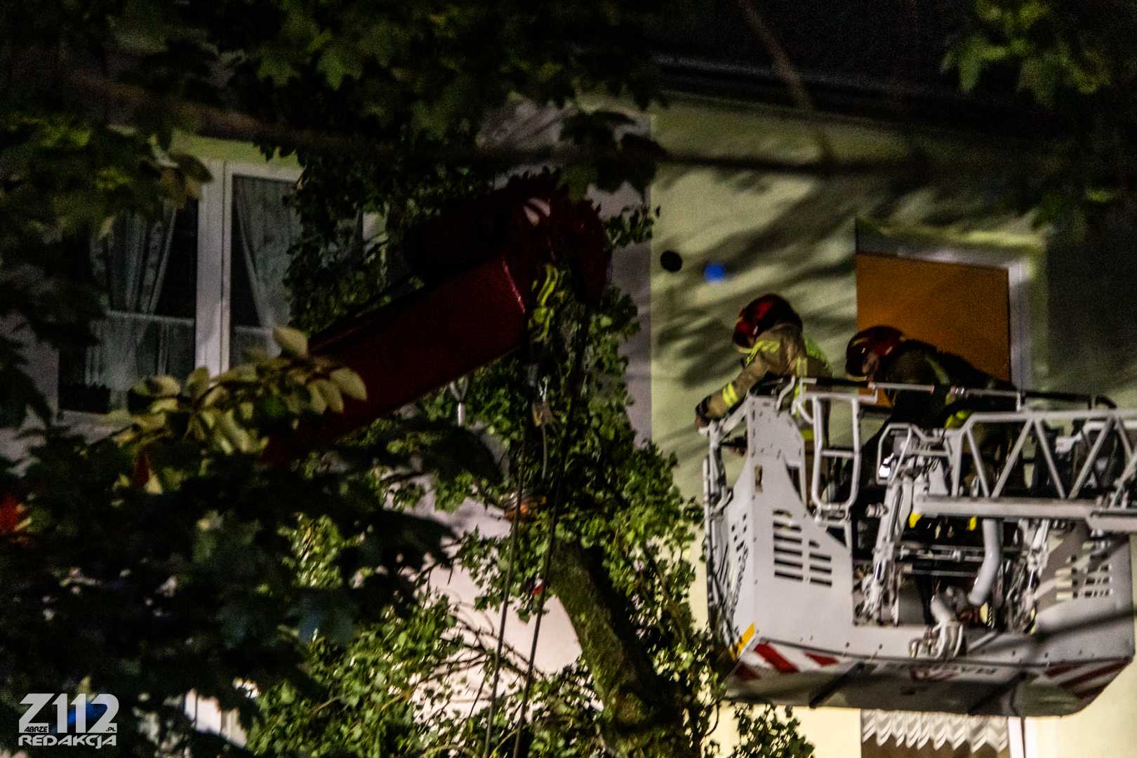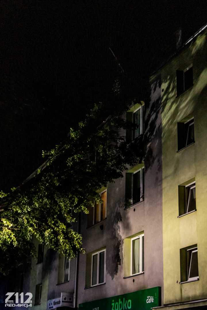 Zabrze. W piątek, 1 lipca na ul. Jordana przez silny wiatr doszło do przewrócenia drzewa, które następnie oparło się na budynek mieszkalny.