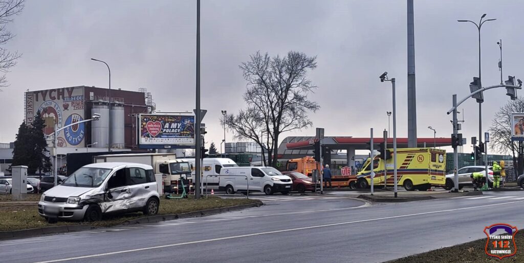 Do zdarzenia doszło dzisiaj, 24 lutego około godziny 6:15 na ruchliwym skrzyżowaniu ulic Mikołowskiej, Katowickiej i Oświęcimskiej (Tychy). W wypadku uczestniczyła specjalistyczna karetka „N”, należąca do Szpitala Klinicznego w Zabrzu, oraz samochód osobowy marki Fiat Panda.