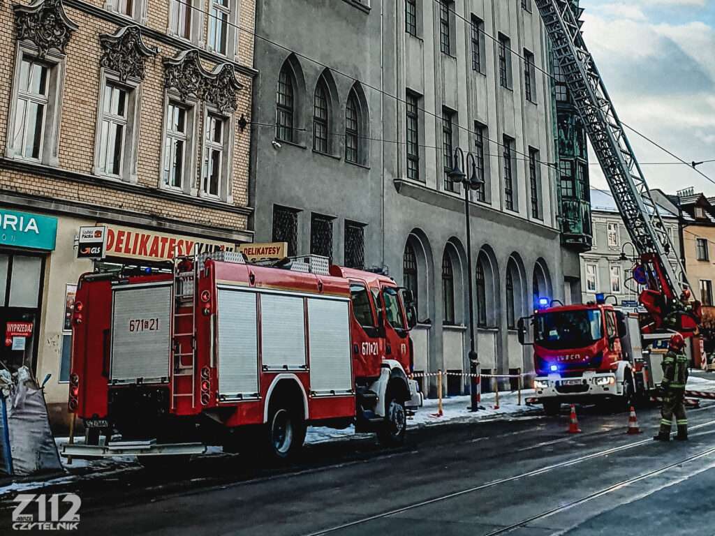 Po godzinie 14 otrzymaliśmy zgłoszenie o uszkodzonym tynku oraz opadających elementach, na miejsce udały się dwa zastępy z Jednostki Ratowniczo-Gaśniczej w Zabrzu. Nasze działania polegają na zabezpieczeniu miejsca zdarzenia oraz usunięciu uszkodzonych elementów. Ruch tramwajowy w kierunku Rudy Śląskiej został wstrzymany, w zdarzeniu brak jest osób poszkodowanych – informuje nas mł. asp. Krzysztof Migas z Komendy Miejskiej PSP w Zabrzu.