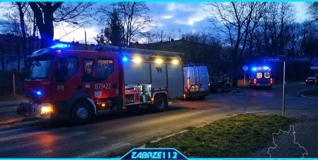 Przed godziną 6:40 do Stanowiska Kierowania Komendanta Miejskiego w Zabrzu wpłynęło zgłoszenie o zdarzeniu drogowym na skrzyżowaniu ulic Damrota i Chłopskiej. Na miejsce zostały zadysponowane 2 zastępy JRG Zabrze, patrol policji oraz Zespoły Ratownictwa Medycznego. W trakcie trwania działań występowały utrudnienia w ruchu.