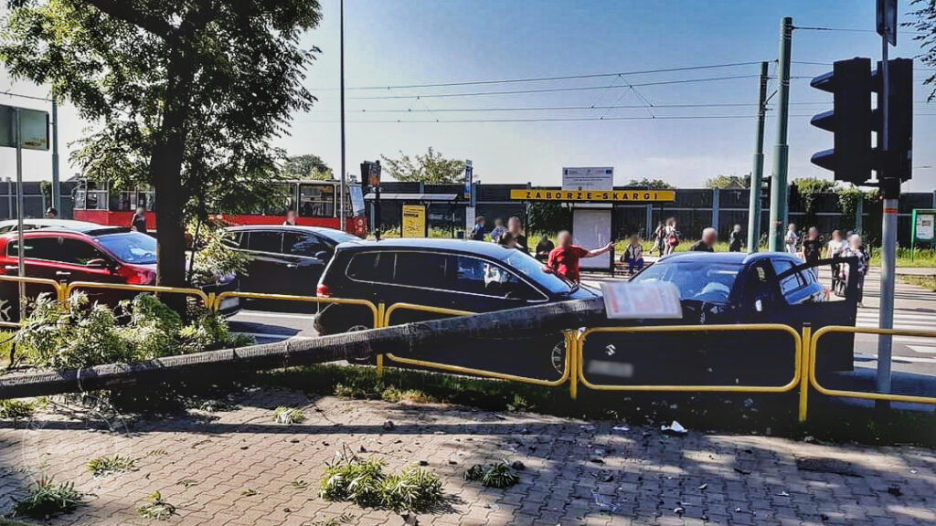 Policjanci ustalili, że 56-letnia kierująca samochodem osobowym marki Suzuki z powodu nadmiernej prędkości przy skręcie z ulicy Piotra Skargi w ulicę Wolności w kierunku Zaborza, uderzyła w słup energetyczny oraz samochód osobowy marki Volkswagen, kierowany przez 27-latkę.