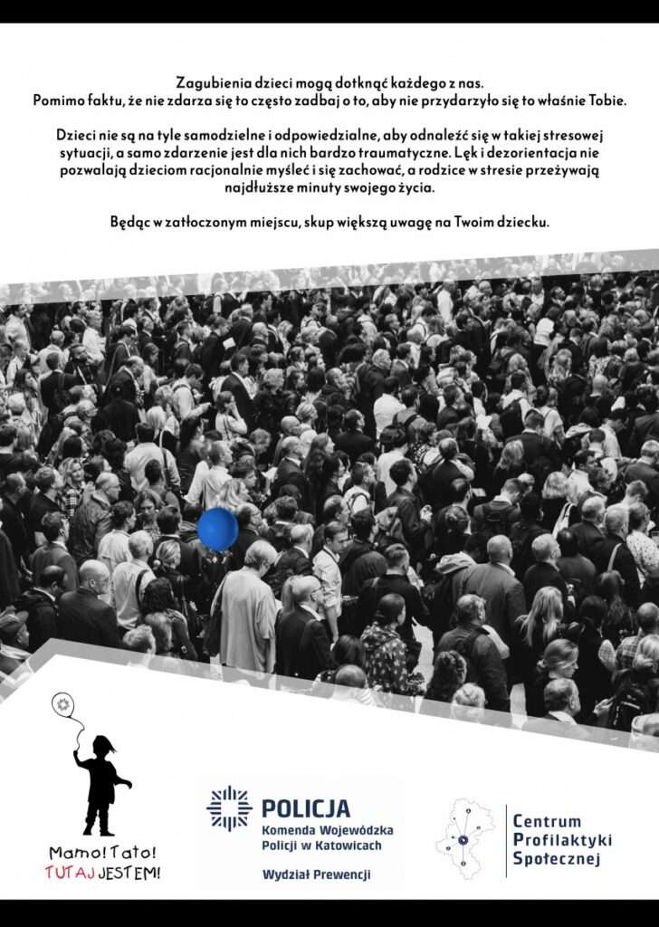 W piątek o godzinie 17.00 zabrzańska Policja przeprowadzi działania profilaktyczne w ramach kampanii społecznej pn. „Mamo! Tato! Tutaj jestem”. Działania zostaną przeprowadzone w Centrum Handlowym M1 w Zabrzu. W trakcie działań prowadzić będą bezpośrednie rozmowy z mieszkańcami miasta. Policjanci będą też edukować najmłodszych i rodziców.