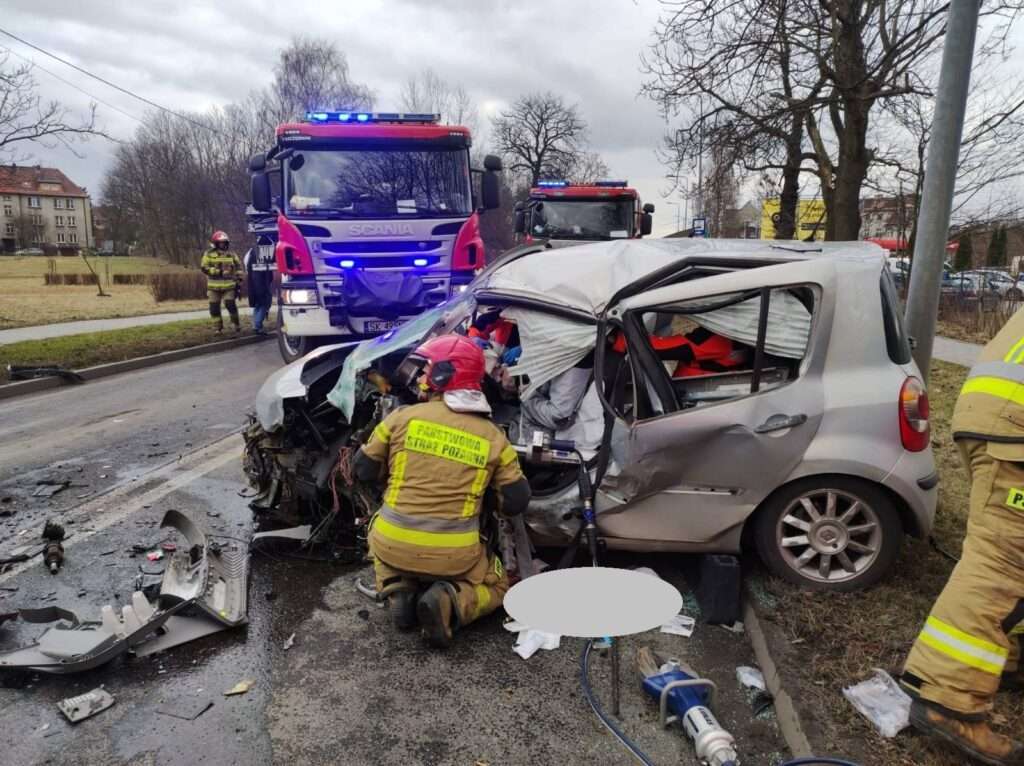 Bytom. W niedziele, 27 lutego na ul. Frenzla doszło do wypadku z udziałem samochodu osobowego oraz autobusu, jeden z kierowców zakleszczony był w pojeździe!