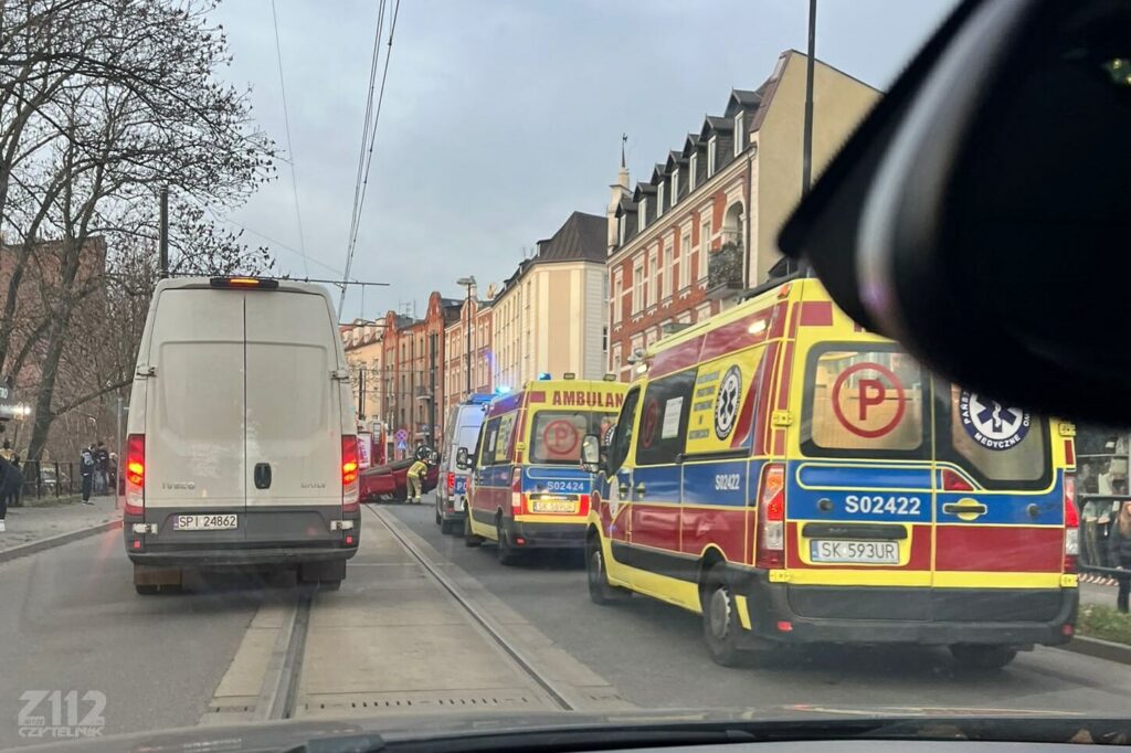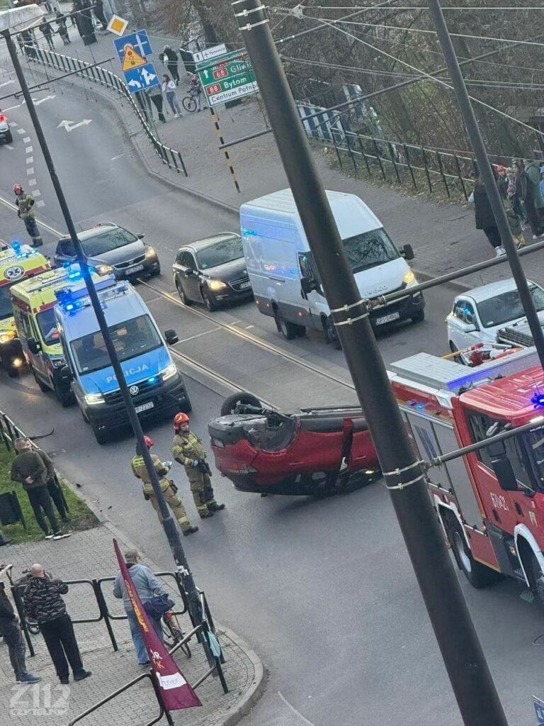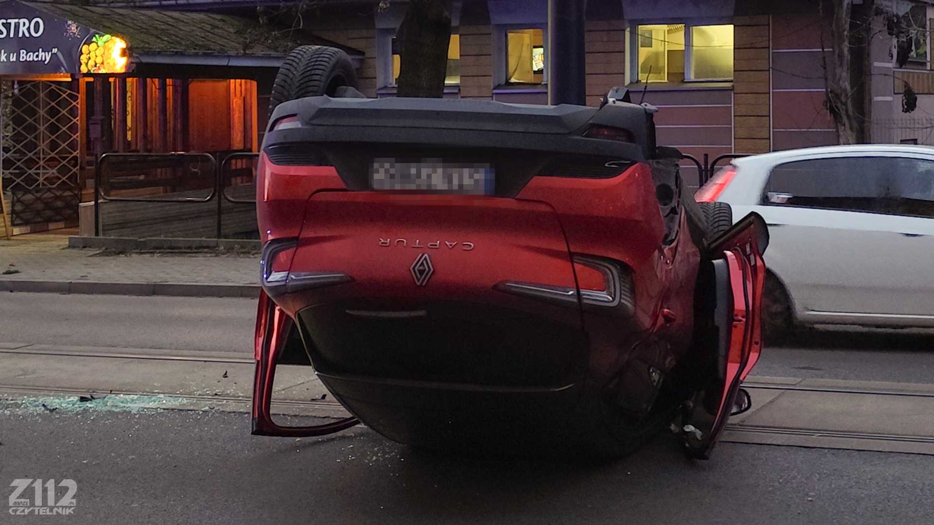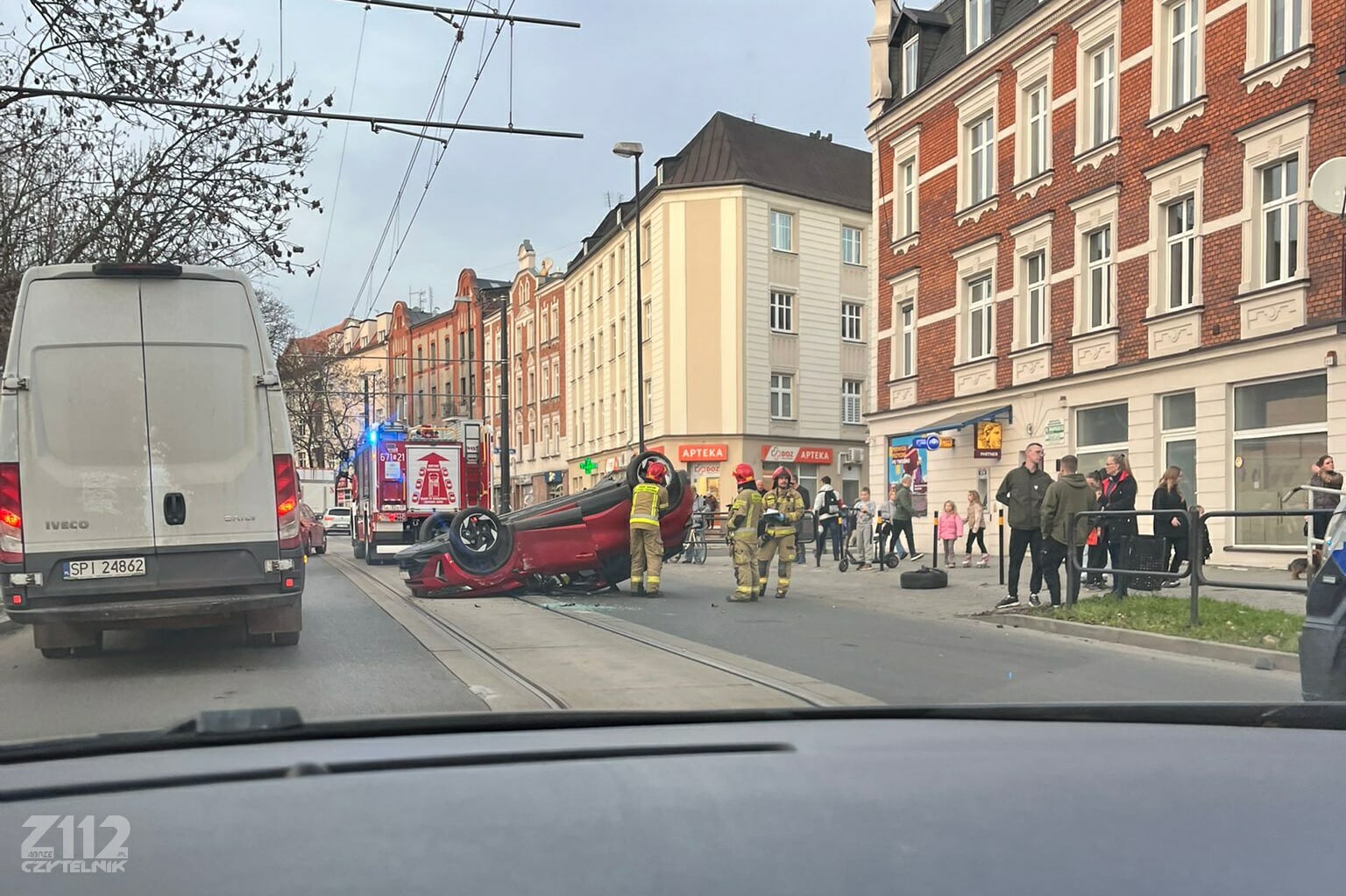W piątkowe popołudnie służby ratunkowe interweniowały na ul. Tarnopolskiej, gdzie doszło do zderzenia dwóch samochodów osobowych. Siła bocznego uderzenia była na tyle duża, że jeden z pojazdów przewrócił się na dach i zatrzymał na torowisku tramwajowym.