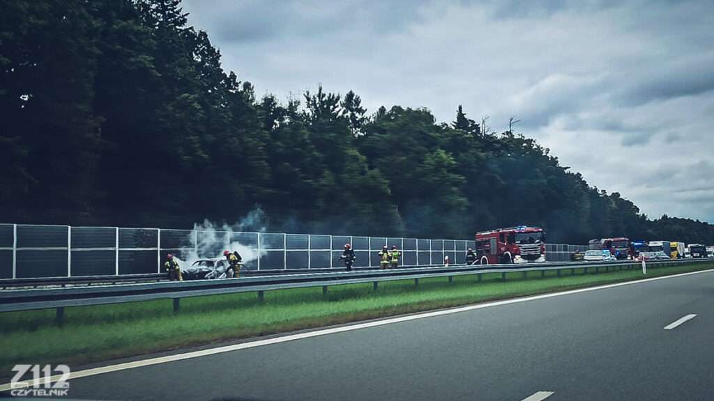 O godzinie 13 do Stanowiska Kierowania Komendanta Miejskie w Bytomiu dotarło zgłoszenie o pożarze samochodu osobowego na 7km autostrady A1C w kierunku Gorzyczek, na miejsce skierowano 4 zastępy JRG Bytom oraz patrol Policji.