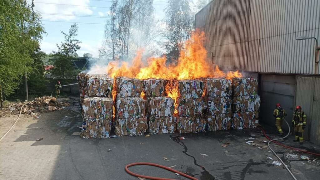 Bytom. W sobotę, 21 maja na terenie zakładu przy ul. Popiełuszki doszło do pożaru makulatury, w działaniach udział wzięło 12 zastępów PSP i OSP.