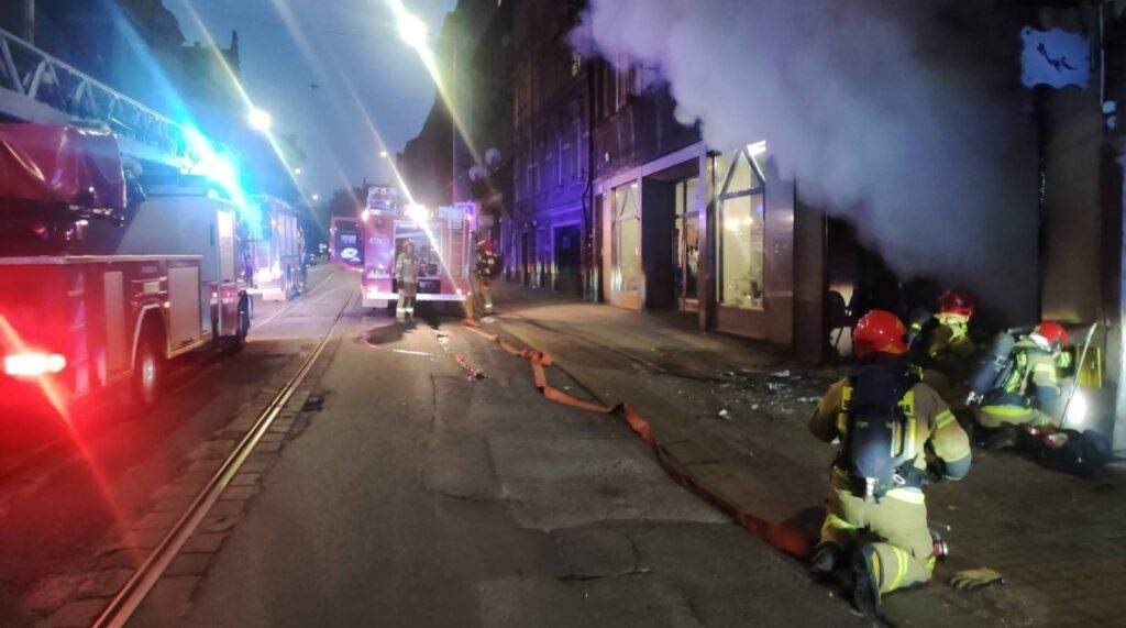 Po przybyciu na miejsce zdarzenia potwierdzono pożar lokalu użytkowego na parterze budynku (4 kondygnacje). Wszyscy lokatorzy budynku opuścili go przed przybyciem na miejsce zastępów i nikt nie uskarżał się na dolegliwości.