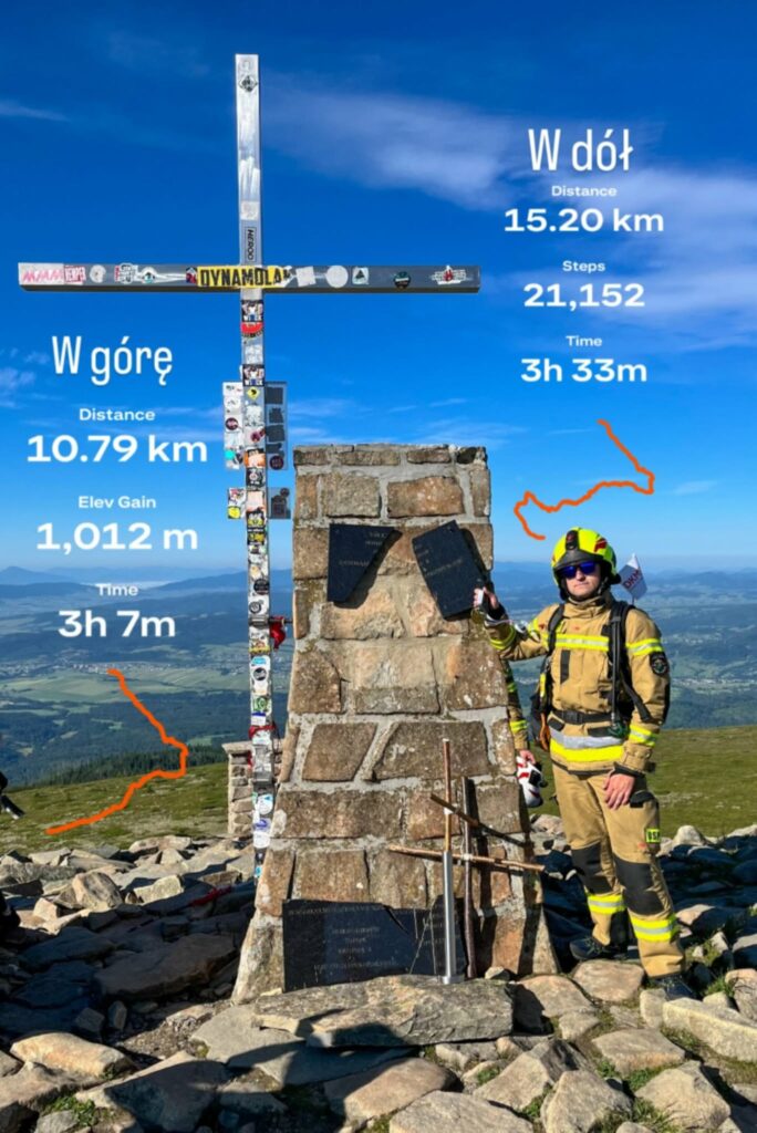 Warunki wejścia były wymagające – wysoka temperatura, silne nasłonecznienie oraz ciężar umundurowania i ekwipunku (ok. 20 kg) stanowiły dodatkowe obciążenie dla uczestników. Mimo trudności wszyscy strażacy z determinacją osiągnęli cel, pokazując, że gotowość do niesienia pomocy nie kończy się na codziennej służbie.
