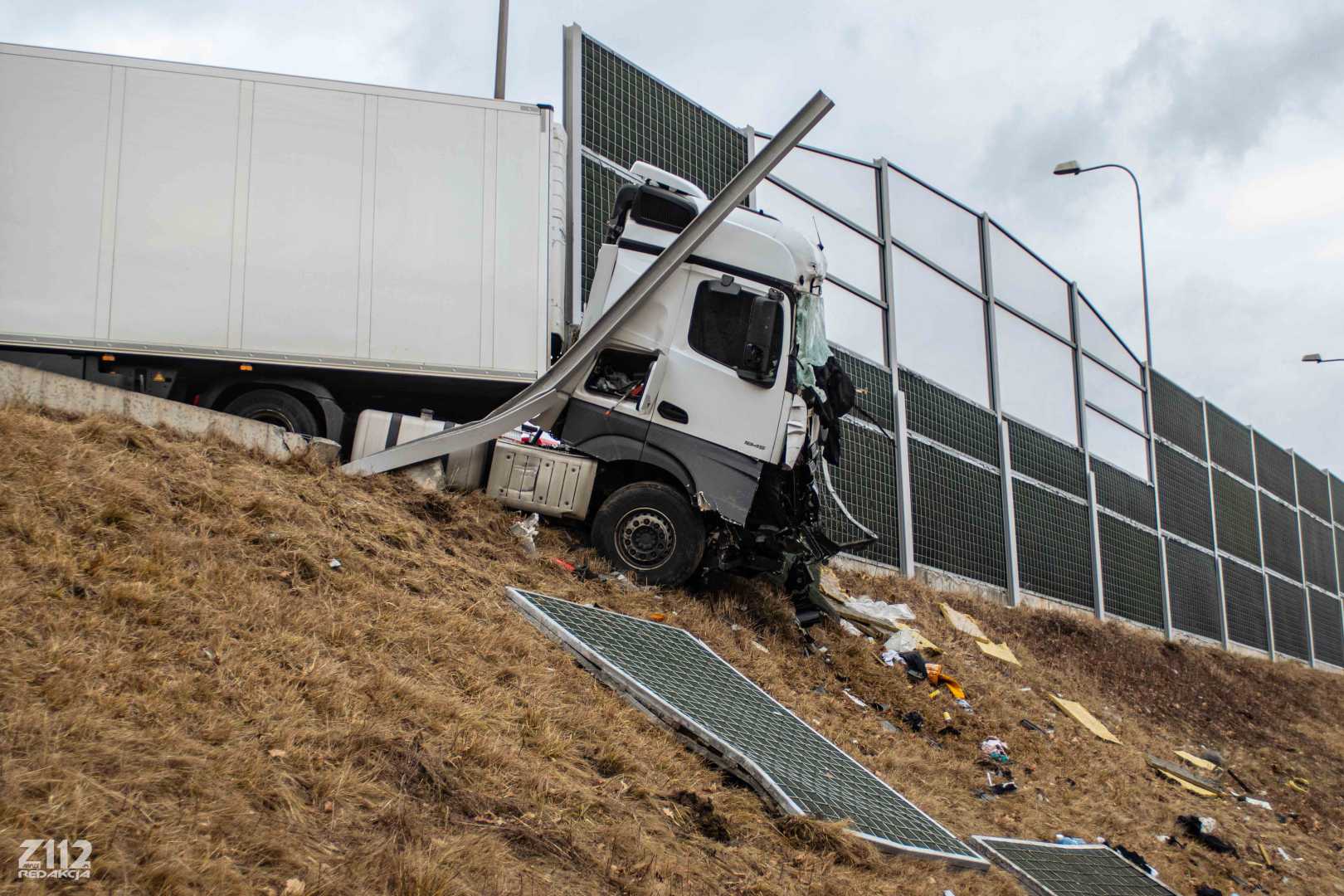 Stracił przytomność za kierownicą TIR-a na A4 – przebił bariery energochłonne! [ZDJĘCIA]
