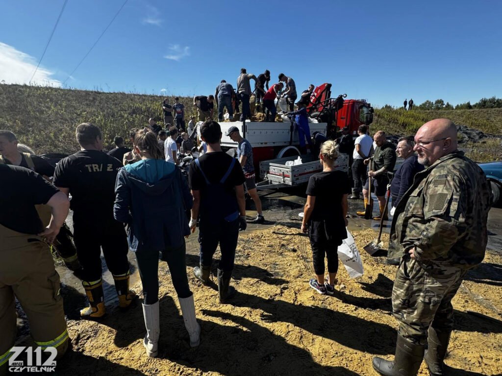 Zabrze. Dziś, w niedzielę 15 września w zabrzańskiej dzielnicy Makoszowy od rana strażacy i mieszkańcy pracują przy wzmacnianiu oraz uszczelnianiu wałów rzeki Kłodnica.