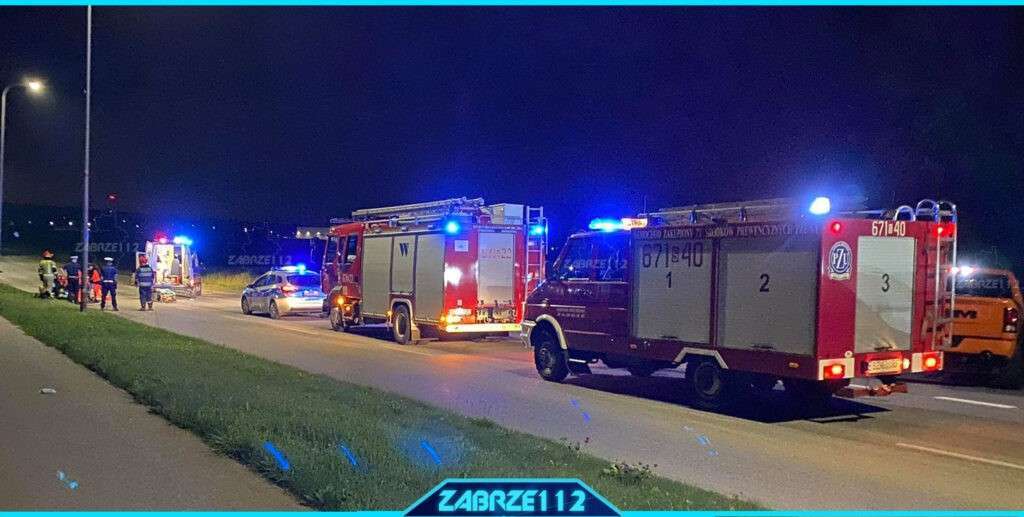 Krótko przed północą na ulicy Donnersmarcka doszło do wypadku motocyklisty. Kierujący motocyklem z dużą prędkością próbował wykonać manewr wyprzedzania, stracił panowanie nad pojazdem na wskutek czego uderzył w latarnie miejską. Na miejsce skierowane zostały dwa zastępy JRG Zabrze 671[S]22 oraz 671[S]40 oraz patrol policji. Po wstępnym rozpoznaniu na miejsce zadysponowano również Zespół Ratownictwa Medycznego który zabrał kierującego motocyklem do szpitala.
