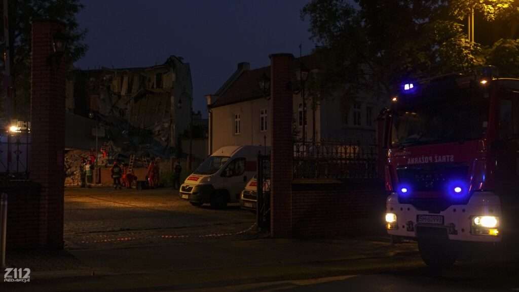 Na miejsce zadysponowano sprzęt burzący (koparki, samochody ciężarowe) w celu odgruzowania zawalonej części budynku. W trakcie odgruzowywania zawalonego budynku co kilkanaście minut wpuszczane były psy ratownicze w celu ponownego przeszukiwania gruzowiska.