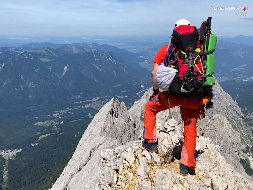 W dniu 18 Lipca 2022 roku zgodnie z założonym planem zdobyłem najwyższa górę Niemiec — Zugspitze o wysokości 2962 metrów nad poziomem morza, który wpisał się na moją listę Klejnotów Korony Europy jako 12 z 46 (projekt realizuje od ponad 20 lat). Inspiracja do tegorocznego wyjazdu i zdobycia wymarzonego Zugspitze była dość prozaiczna, ponieważ koleje niemieckie zaoferowały bilety dla każdego chętnego za jedyne 9 euro. Na takim bilecie można podróżować po całych Niemczech przez okres całego lipca. Dzięki pomocy kolegi, który jest kierowcą zawodowym, podróż do Garmisch-Partenkirchen rozpocząłem w Berlinie, gdzie zostałem podwieziony ciężarówką. Następnie dalej pociągami udałem się w upragnione Alpy Bawarskie. W Bawarii zameldowałem się po 17 godzinach jazdy pociągami i zaledwie 6 przesiadkach. Na Zugspitze wybrałem drogę przez tak zwaną Piekielną Dolinę Höllental, a następnie ferratą (stalowa lina służąca do asekuracji, żelazna perć). Po przybyciu na miejsce wypatrzona na mapie wiata turystyczna okazała się dobrym hotelem. Budzik nastawiłem na 05:00, jednak już o 02:00 w nocy borsuk zaciekawiony plecakiem nie dał pospać. Dzięki temu już o 5 zapukałem do wrót piekielnej doliny, a było warto! W zasadzie dzięki tak wczesnej pobudce, w dolinie byłem sam (nie działały nawet kasy biletowe). Miałem więc możliwość przedzierać się przez wąskie korytarze, gdzie z każdej strony spadają wodospady, a jedynym towarzyszem był nieustanny szum wody. Droga przez wąwóz wiedzie przez wykute w skale tunele, z których ścian co chwilę leje się z woda (rano warto mieć coś grubszego, bo nawet było chłodno). Po prawie dwóch godzinach docieram do schroniska Höllentalangerhutte (1387 metrów nad poziomem morza). Tam spotykam pierwszych turystów, robię również śniadanie i podziwiam ZUGA. Na Zugspitze prowadzi piękna droga oferująca podejście doliną, wspinaczkę ferratą oraz krótki odcinek lodowca. Można więc powiedzieć, że jest wszystko, czego potrzeba. Ja miałem na pewno wszystko — endorfiny pobudzały do wspinaczki, również pogodę, która wydawać by się mogła świetna, bo bez chmurki, co niestety przyniosło efekty podczas wspinaczki — było masakrycznie upalnie. Testem na wejście i dalszą drogę może być dla niektórych tak zwany „brett” (deska), czyli eksponowane miejsce na samym początku, gdzie należy stąpać po metalowych prętach po pionowej ścianie z „lufą” pod nogami. Były osoby, które zawracały. Przypominam, że na ferracie używamy: lonży, kasku, rękawic — ABC wspinaczki po żelaznych drogach. Ja dodatkowo miałem pętle do zrobienia auto, cóż selfie musi być 😉 Po przejściu testu na Zuga zatrzymuję się przy wodospadzie, gdzie delektuję się kawą z widokiem na piekielną dolinę, mając w głowie, jakie piekło czeka przede mną, szczególnie że słońce paliło niemiłosiernie. Kolejny odcinek wiedzie przez lodowiec Höllentalferner około 2250 metrów. Lodowiec, a właściwie jego pozostałość i jego krótki odcinek spowodowała, że po pierwsze pojechałem sam (na lodowcu nie chodzimy w pojedynkę), a z uwagi na wagę plecaka zabrałem podkładki z kolcami. Drugą decyzję obecnie zamieniłbym na raczki, ewentualnie raki, ponieważ pomimo krótkiego odcinka były momenty, gdzie musiałem rąbać stopnie, żeby poruszać się do przodu (góry weryfikują nasze decyzje). Na szczęście byłem na tyle spokojny i zdeterminowany, że udało się bezpiecznie pokonać lodowiec, wyznaczając nawet drogę dla innych osób. Kolejnym testem na ZUGA było wejście na ferratę z lodowca. Dla niektórych osób na tyle trudne, że rezygnują z dalszej wspinaczki. Odcinek ponad lodowcem jest trudny technicznie, ale najbardziej wydolnościowo (również ja go poczułem, szczególnie, że słońce nie odpuszczało, a tam tylko skała i skała). To, że było trudno tego dnia, świadczy nawet akcja ratunkowa dwójki Niemców, którzy tak osłabli na ferracie, że jedyną drogą w dół okazał się transport śmigłem z ratownikami. Szybkość, z jaką ratownicy niemieccy przeprowadzili akcję pobrania dwójki turystów ze ściany, na długiej linie zrobiła na mnie wrażenie. To, że było trudno na ferracie, obrazuje również fakt, iż według znaków w pewnym momencie na trasie miałem 50 minut do szczytu, a odcinek pokonałem (z przerwami) w około 2 godziny. Trud i zmęczenie odniosły jednak efekt i tak po 12 godzinach marszu zameldowałem się na szczycie. Na Zugspitze spotkałem kilka osób, które wjechały kolejką, na szczęście nie było tłumów. Po sesji fotograficznej z nieodzownym złotym krzyżem postanowiłem zejść w dolinę, a po drodze zanocować pod jakąś piękną skałą, (a nie zjechać). Na Zuga można wjechać kolejką, która bije wszelkie rekordy, wagonik robi wrażenie, sam szczyt natomiast z hotelem, tarasem zrobił mniejsze; jak dla mnie taki lunapark. Spotkani po drodze niemieccy wspinacze zaproponowali „podwózkę” do samego Monachium, do tego schodzili najszybszą drogą na teren Austrii – mimo zmęczenia nie mogłem zmarnować takiej okazji, poczułem moc oraz fakt, że los mi sprzyjał. Dzięki temu przed północą znalazłem się na dworcu kolejowym w Monachium, skąd o 4 rozpocząłem swój kolejowy powrót w kierunku Polski do Görlitz, a stamtąd do Zgorzelca, gdzie równie szczęśliwie udało mi się złapać stopa do Zabrza.